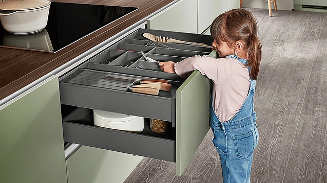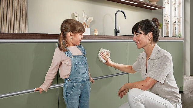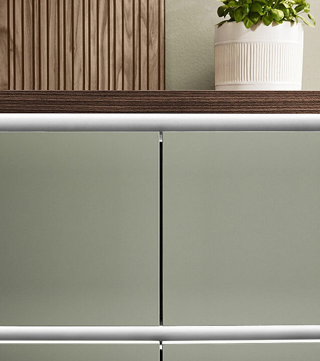 Природа с ее широким спектром материалов и цветов является идеальным источником вдохновения для нашего дизайна кухни. В сочетании с прочной столешницей из миланского ореха, концепция тон в тон в оливковом цвете создает идеальный баланс между современностью и связью с природой. Темная облицовка ниши Stripewood усиливает уютное очарование с помощью удивительно аутентичного деревянного декора, делая это естественное пространство, в котором вы можете провести драгоценное время с близкими.